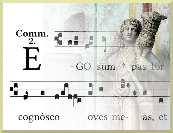 This week I looked ahead at this Sunday’s Communion Antiphon, and it’s another favourite one: Ego sum pastor bonus. It’s not the simplest, but it’s not that crazy either.